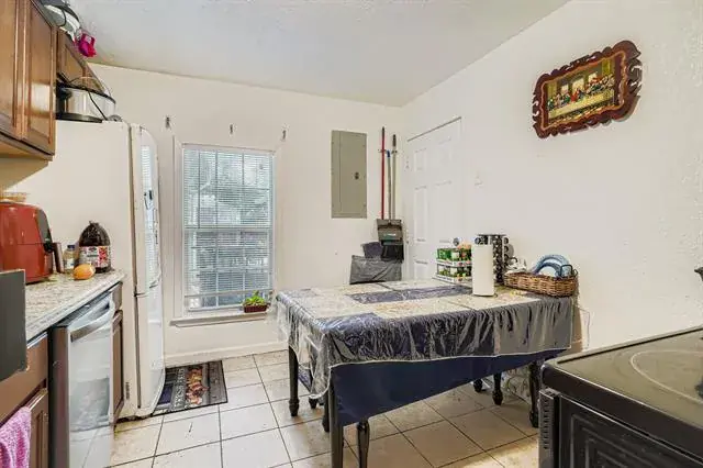Welcome to this charming Fort Worth home offering comfort, convenience, and versatility. The bright living room is filled with natural light, creating a warm and inviting atmosphere. The quaint kitchen provides space for a small dining table, perfect for everyday meals or casual entertaining. The primary bedroom features an ensuite bathroom with a soaking tub, offering a cozy retreat at the end of the day. A spacious laundry room with abundant storage adds everyday functionality.