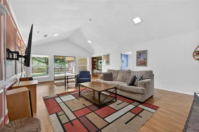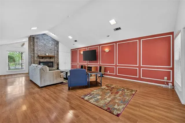 Framed by a striking covered front porch & crisp curb appeal, this Candleridge home opens with a warm, polished feel that carries throughout. Inside, vaulted ceilings lift the main living area while expansive windows draw in natural light & backyard views. A wood-burning brick fireplace anchors the room, joined by a wet bar, built-in cabinetry, practical flooring with no carpet, & an effortless flow that feels both inviting & refined. The front office offers flexibility for work, reading, or a formal dining space, while the entry makes a memorable first impression with LVP flooring & an accent brick wall.