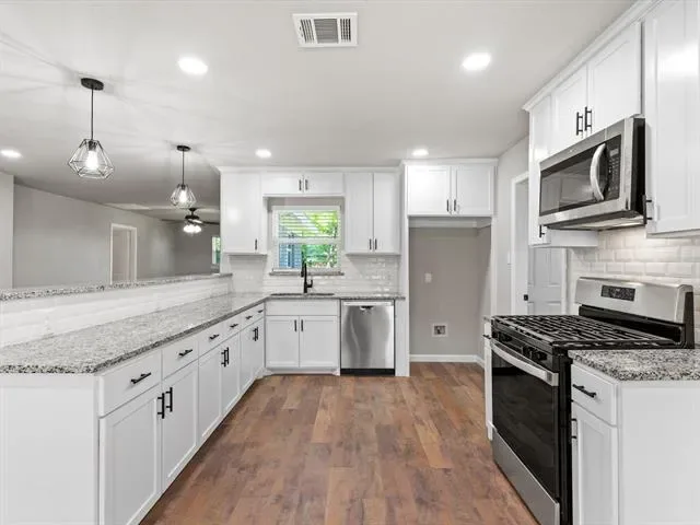 Step into this beautifully renovated 3-bedroom, 2-bath home where modern upgrades meet timeless charm. The fully updated kitchen is a true showstopper, featuring brand-new cabinetry, sleek granite countertops, stainless steel appliances, and a gas range—perfect for both everyday living and entertaining.