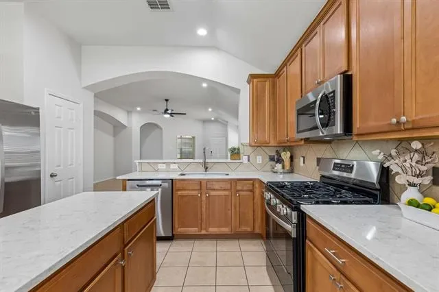Beautifully maintained 3-bedroom, 2-bath home offering 1,984 square feet of comfortable living space in a lovely sidewalk-lined neighborhood. Built in 2006, this home backs to a peaceful utility greenspace with a walking path, providing added scenic views. The interior has been freshly painted in 2026 and features numerous recent updates including the HVAC system, dishwasher, microwave, and oven all replaced in 2025. The spacious layout includes a dedicated office and a 2-car garage. The well-designed living areas are perfect for everyday living and entertaining. Roof replaced in 2020. Enjoy the covered patio and a minimalist yard for easy exterior enjoyment. Located in highly regarded Northwest ISD and zoned to Byron Nelson High School. A wonderful opportunity to own a beautifully cared-for home in a desirable location!
