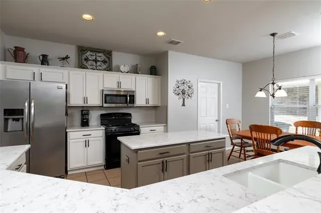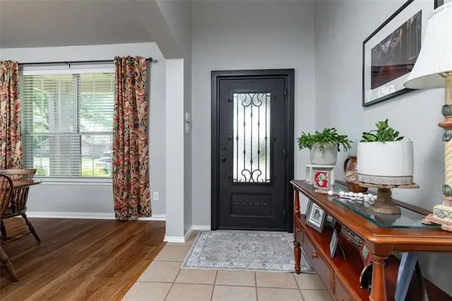 Rare Opportunity to back to Corps of Engineers heavily treed land, providing a tranquil atmosphere and direct access to trails. Updated 4 bedroom with 2 and a half baths. The primary bedroom is located on the first level with ensuite bathroom offering an oversized shower with dual shower heads, a long vanity with dual sinks, and a large walk-in closet. The spacious updated kitchen has beautiful quartz countertops, white backsplash, white cabinets, large island, breakfast bar, gas range, built-in microwave and diswasher. Kitchen has adjoining breakfast area and opens to the living room. Both the downstairs living room and the upstairs game room are spacious areas. Front flex room is currently configured for a dining area, but could serve as a sitting area, library or office. The utility room has a wall of open shelves for storage or panty use. Covered front porch and covered back patio provide outdoor sitting areas. Students attend Northwest ISD. Located close to shopping, dining, and medical facilities. Easy access to SH-114, I 35W and Hwy 377. Buyer or Buyer’s Agent responsible for verifying all information, measurements, schools and HOA fees and regulations.