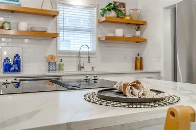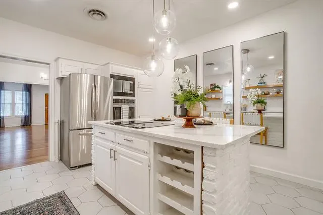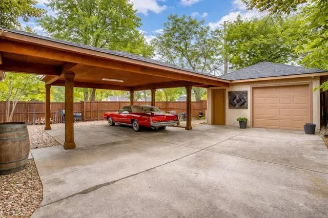 Charming Arlington Heights bungalow on a prime corner lot in one of Fort Worth’s most sought-after neighborhoods! Ideally located just minutes from Dickies Arena, TCU, UNTHSC, the Medical District, and downtown Fort Worth, this home offers the perfect blend of convenience, character, and lifestyle – close to top dining, entertainment &' major employers while still nestled in a quiet, established community. From the moment you arrive, the inviting, oversized front porch &' mature landscaping create incredible curb appeal &' a warm welcome. Step inside to find a stunning original brick fireplace &' beautifully refinished original hardwood floors that preserve the home’s historic charm while complementing its thoughtful updates. The updated kitchen is a true highlight, featuring sleek quartz countertops, eye-catching floating shelves &' abundant storage, all designed with both style and functionality in mind. The layout flows seamlessly into the living and dining areas, making it ideal for entertaining or everyday living. Both bathrooms are generously oversized compared to typical homes in the neighborhood. The primary suite offers a spacious retreat with a dual vanity, granite countertops &' a separate tub and shower. Ample storage throughout the home ensures everything has its place. Outdoor living is just as impressive with a large flagstone patio perfect for relaxing or hosting gatherings. The corner lot provides added privacy and flexibility, enhanced by a full privacy fence and a gated driveway with an electric opener. Car enthusiasts or those needing extra space will appreciate the oversized one-car garage along with a massive 2-car custom carport that easily accommodates two additional vehicles. This home truly stands out with its combination of historic charm, modern updates, generous room sizes, and unbeatable location. A rare opportunity to own a beautifully maintained property in the heart of Fort Worth!