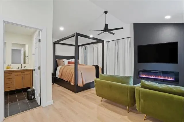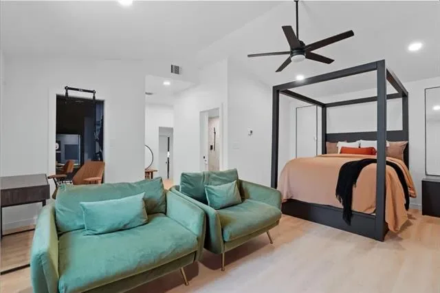 The private primary suite addition feels like a true retreat with vaulted ceilings, a spacious walk-in closet with built-ins, a large walk-in shower, and direct access to the laundry room a feature buyers absolutely love.