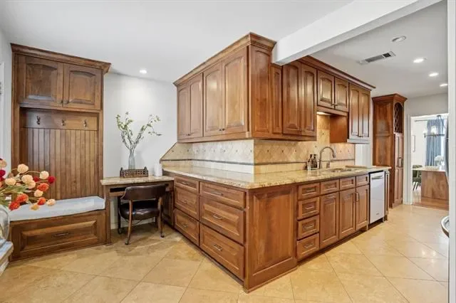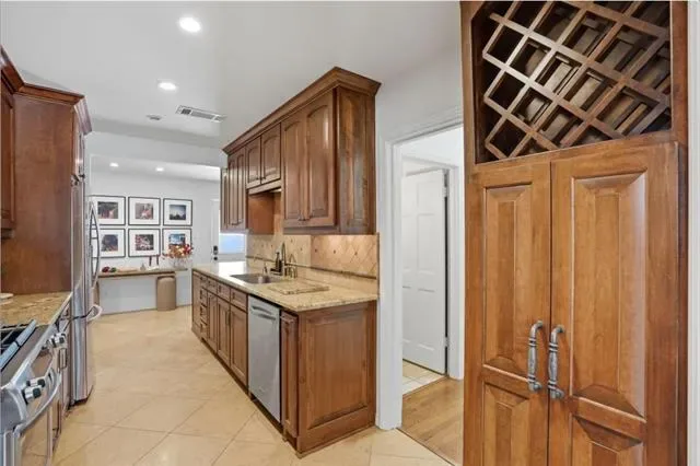 The kitchen is designed for everyday living and entertaining, featuring stainless steel appliances, generous cabinet storage, a walk-in pantry, study nook, and convenient mudroom-style storage. It opens seamlessly to the main living areas, making it ideal for gatherings and daily life.