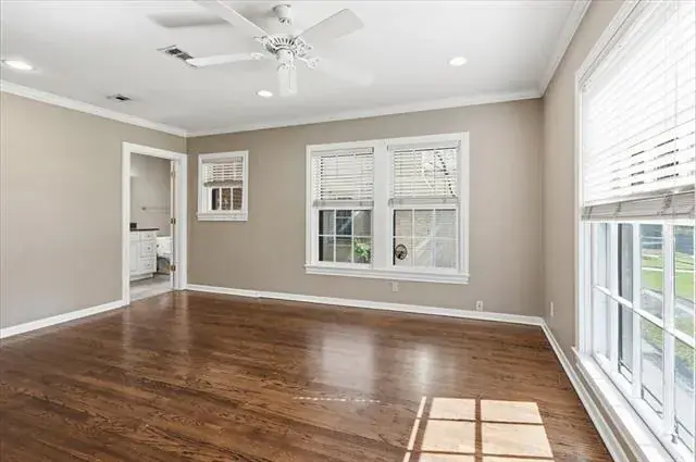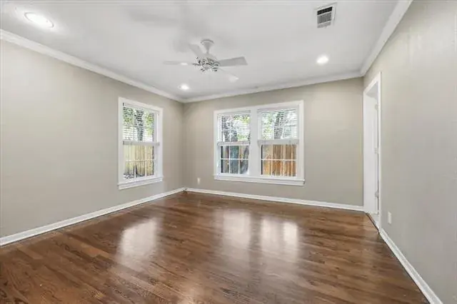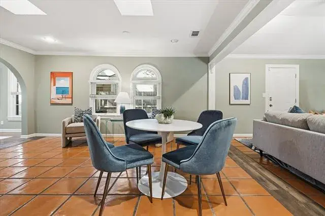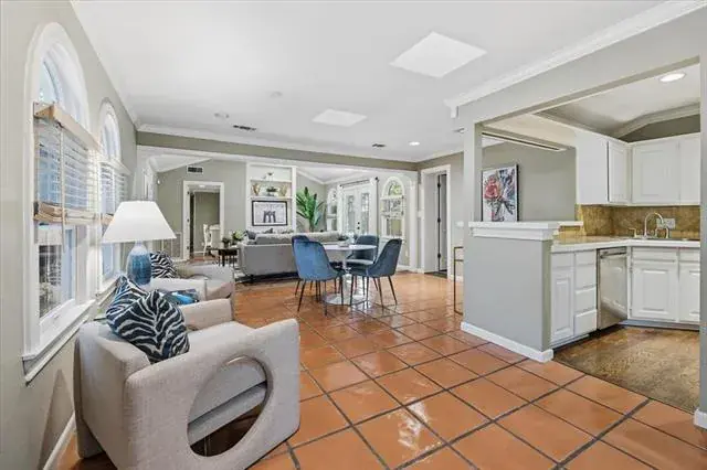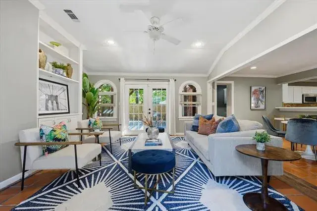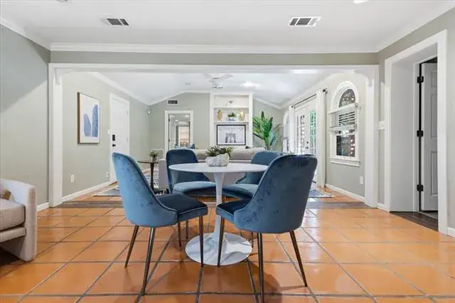 This fabulous house in Chamberlain Heights sits on a beautiful lot with a large live oak in the front yard. There are 3 bedrooms with 3 full bathrooms and 1 powder bath. As you walk in the front door, you will find beautiful natural light shining into the first living area with two bedrooms off either side. Up next, you flow into the dining room, which is also connected to an open-concept kitchen, space for a breakfast table, and secondary living area that accesses the backyard. Off of the secondary living area, you will find the primary bedroom. On your way into the bedroom, you will find fabulous storage cabinets, a utility closet, and a large built-in desk. The primary bedroom is both private and spacious with a walk-in closet, bathroom that boasts a shower and separate tub, and its own access to the backyard. Attic is incapsulated with insulated panels. A new backyard fence was installed in late summer 2025.