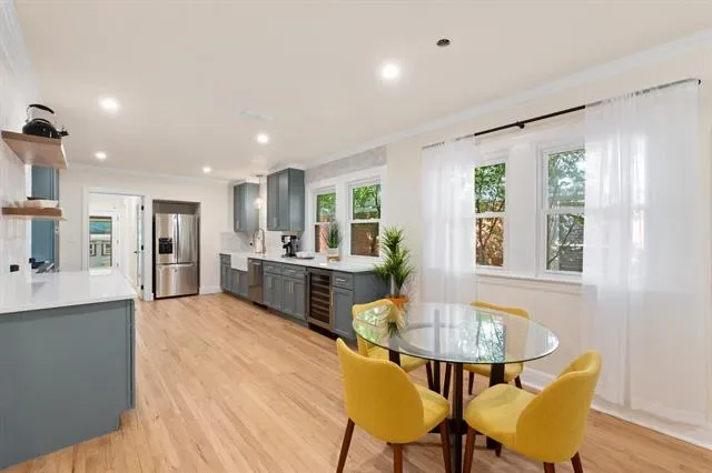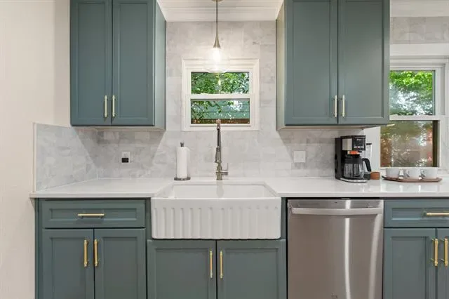 RENOVATED LUXURY IN THE HEART OF ARLINGTON HEIGHTS! Don’t miss this 1937 Tudor on huge double corner lot with detached 2 car garage, multiple outdoor living areas, professional landscaping, fully fenced and lighted outdoor space. This home has been professionally renovated to the highest standards with new plumbing, new electrical, new HVAC, updated energy efficient windows and new roof. Newly renovated and expanded kitchen with quartz counters, 36 in gas chef’s range, pot filler and solid wood cabinetry. Custom high end marble wall tile. Beautifully refinished, pristine nearly 90-year wood floors add character and warmth throughout. Open concept living space with very private bedrooms. Every room boasts multiple windows bringing in natural light that is seldom found in homes of this era. Luxury primary bedroom suite built with privacy in mind boasts amazing custom walk in closet and new spa like bath with marble shower and vanity wall. Bonus sunroom can be used as office space, garden room or a Zen like space for escape and relaxation. Rare 2 car garage with bonus storage workshop space. New irrigation system for easy landscape care. Just minutes from The Bricks on Camp Bowie, Downtown, Central Market, TCU, Dickies, Clear Fork and all Fort Worth has to offer! All within the very peaceful and historic Arlington Heights neighborhood with mature trees, and sidewalks for strolling. EVERYTHING you can think of has already been done – all you need to do is move in and add your story to the 90 years that preceded you! Open House April 18 from 2-4 pm.