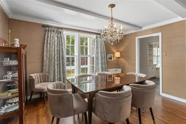This timeless two-story Colonial, perfectly positioned within walking distance of River Crest Country Club and Hudson House, offers 3 spacious bedrooms and 2.5 baths. Inside, natural light fills the main living area, where hardwood floors, a modern wood-burning fireplace, and custom built-ins create an inviting, understated elegance. The dining room offers a refined setting for gatherings, while the updated kitchen features sleek finishes, stainless steel appliances, and a built-in refrigerator.