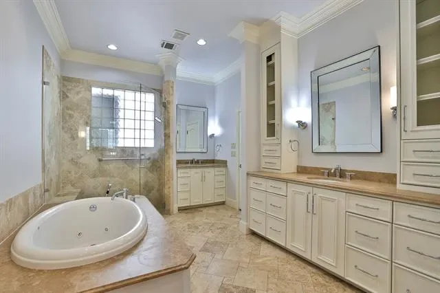 Nestled in Fort Worth’s coveted 76107 zip code, this beautifully updated home blends sophistication, comfort, and convenience just minutes from River Crest Country Club and north of Camp Bowie Boulevard. Built in 2007, the thoughtfully designed floorplan features a welcoming living room with gas log fireplace, built-ins, and sliding doors opening to one of the several private courtyards for seamless indoor-outdoor living. The expansive kitchen is ideal for entertaining with a massive island, quartz countertops, gas range, and built-in refrigerator. The first-floor primary suite offers a serene retreat with courtyard access and a luxurious marble bath featuring a jetted soaking tub, separate shower, dual vanities, and custom closet with direct access to the main floor laundry room. Upstairs includes two ensuite bedrooms both with walk-in closets, a secondary living area, and additional laundry room with an additional versatile closet or work space. Recent 2023 updates include main level wood flooring, fresh paint, quartz surfaces, designer lighting, all new PEX plumbing, while the oversized two-car garage features epoxy floors, custom cabinetry, and equipped with a generator hookup outlet.