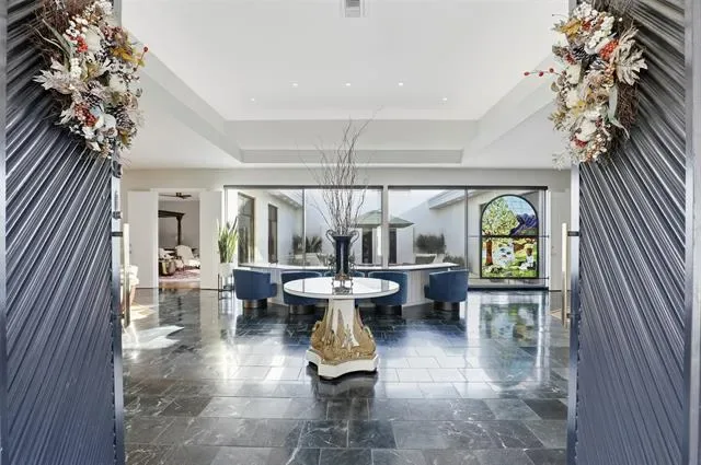 This home features 2 bedrooms, 2 full baths, and 3 half baths, with the flexibility to transform the spacious upstairs great room into a third bedroom, private office, or additional living area. The possibilities are endless. Upon entering, you are welcomed by an impressive 23-foot foyer that leads to a sunken bar—an ideal setting for entertaining. Whether hosting dinner in the expansive dining area or relaxing in the oversized living room, the home’s layout offers seamless spaces for gatherings of any size.