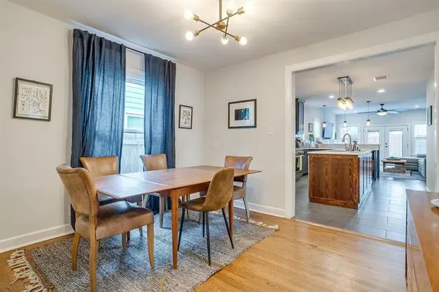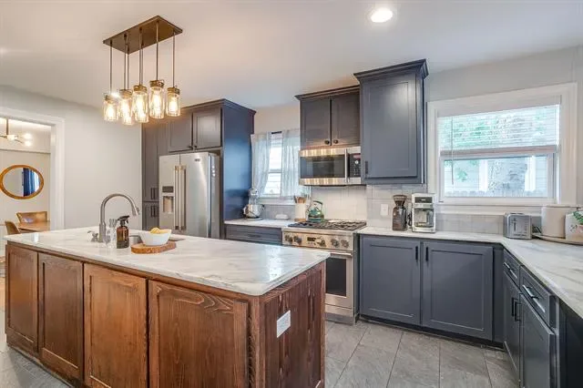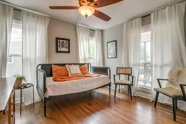 Welcome home to this beautifully updated modern traditional offering 3 bedrooms, 2 bathrooms, and a dedicated office. From the moment you step inside, you are greeted by charming built ins, a bright home office, and recently refinished real hardwood floors that run throughout, creating warmth and character at every turn. The light filled kitchen is both stylish and functional, featuring stainless steel appliances, marble countertops, decorative lighting, and an inviting island with built in cabinetry for added storage. Large, updated windows throughout the home bring in abundant natural light and enhance the airy, welcoming feel. The spacious primary suite offers a true retreat with a large walk in closet and an updated ensuite bathroom complete with a walk in shower and classic clawfoot tub. Step outside and enjoy the welcoming covered front porch or relax and entertain in the thoughtfully designed backyard featuring new pavers, a deck, cedar fencing, storage shed, and garden beds. Whether hosting friends or enjoying a quiet evening, this outdoor space is ready to impress. Additional updates over the past few years include an AC unit, dishwasher, 7 zone sprinkler system, St Augustine sod, refreshed front landscaping, and freshly trimmed trees, offering peace of mind and move in ready convenience.