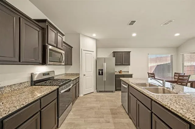 WITH 1% INTEREST RATE temporary Lender BUY DOWN courtesy of our preferred lender, now is the perfect moment to make your move! Welcome home to 2105 Myrtle Beach Dr. in the desirable Highlands of Chapel Creek subdivision, where modern living meets thoughtful design! This stunning 1-story residence features a popular open-concept layout, the Starkville floor plan, offering 4 bedrooms, 2 full bathrooms, and a 2-car garage. The spacious living and dining areas create an ideal setting for everyday living and entertaining, seamlessly flowing into the well-appointed kitchen. The kitchen is a chef’s delight, equipped with ample cabinetry, granite countertops, a seating island, and gas range. High-traffic areas showcase durable, easy-care ceramic tile flooring for added convenience.Step outside to relax or entertain in the private backyard featuring a covered patio, perfect for relaxing or hosting gatherings. The split bedroom arrangement provides added privacy, with the large primary bedroom boasting a walk-in closet for ample storage. Enjoy walking distance access to Chapel Creek amenities, including two community pools and a clubhouse available for private events. Additionally, this fantastic home is conveniently located near shopping, dining, and major highways, just minutes from Downtown Fort Worth, the Fort Worth Nature Center &' Refuge, Sundance Square, and a variety of shops and restaurants. Don’t miss your chance to make this beautiful home your own—schedule a showing today!
