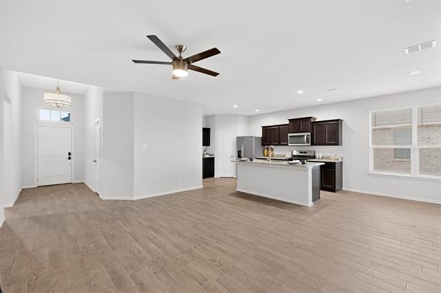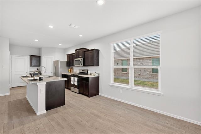 Built in 2022 and beautifully maintained by its original owner, this 4-bedroom, 2-bath home with a 2-car garage offers open-concept living, featuring a chef’s kitchen with granite countertops, stainless steel appliances, a gas range, a walk-in pantry, and a large island. The split-bedroom layout provides privacy, spacious primary ensuite includes dual sinks, an oversized shower, and a custom walk-in closet. Smart home features—ADT security, Honeywell thermostat, smart fans, and front door lock—add modern convenience. Enjoy a covered front porch, a private fenced backyard with open green space, a tankless water heater, a full sprinkler system, and an epoxy-coated garage with a 240V outlet. Ideally located with convenient access to I-30 and 820, near Lockheed Martin and the Naval Air Station, Lake Worth Lake, Downtown Fort Worth, Sundance Square, and Clearfork. Access to community pool, cabana, playground, and new amenity center just blocks away.