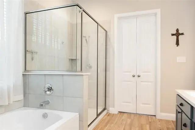 The primary suite, complete with dual vanities, a deep soaking tub, and a generous walk-in closet designed for both function and relaxation. Secondary bedrooms are well-appointed, offering flexibility for guests, work-from-home needs, or families.
