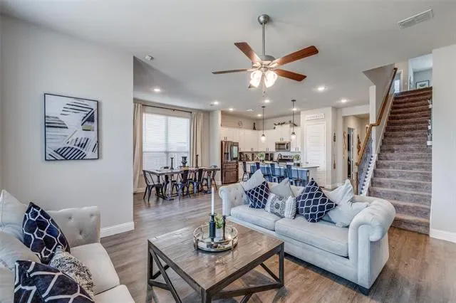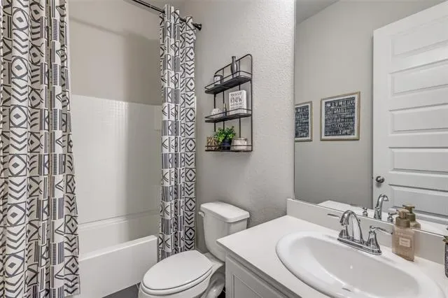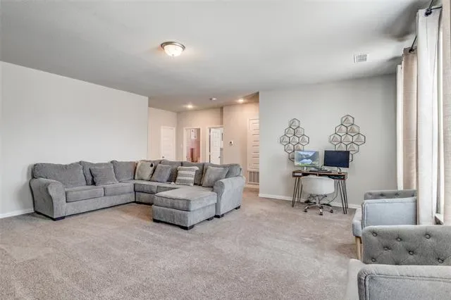 This meticulously maintained home boasts 4 bedrooms, 3 full bathrooms, an open concept design, a versatile flex room that can be an office or den, and a huge second living space or game area upstairs. The open-concept living and kitchen areas are tastefully designed and hold plenty of space to entertain company. Additionally, the master bedroom is conveniently located away from the secondary bedrooms and boasts an ensuite bathroom with separate vanities, two separate closets (his and hers), and a separate tub and shower. Furthermore, upstairs is the perfect oasis for kids or visitors due to the massive living space, two spacious bedrooms, and a beautiful bathroom. Lastly, do not forget the additional 4th bedroom on the 1st level, a spacious office, den, or man cave, and a 3rd bathroom. This is an exceptional opportunity to own a home conveniently located off Chisholm Trail Tollway. Don’t miss the chance to make this beautiful home your own. Schedule your tour TODAY!