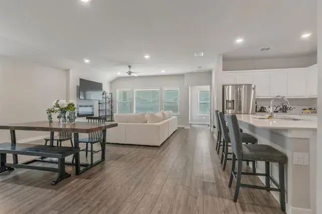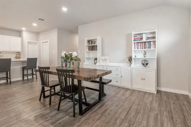 *Note: The seller currently has a VA loan with an interest rate of 3.75 which could be available for a qualifying Veteran only. This 4 bedroom home has builder updates including family room electric fireplace with features, tankless hot water heater, office nook with built-in desk and art niche in foyer. The floor plan is open, light and bright! The kitchen features a gas cook top and a large island with plenty of room for bar stools. The bedrooms are split and one large bedroom or flex room is currently used as a playroom. The primary bedroom is large with windows to the back yard. The master bath has two sinks, an over-sized shower, a linen closet and a large walk-in closet. The front 2 bedrooms have a bath between with 2 sinks and a linen closet. This home is ready for a quick close and has been lightly lived in. It is move-in ready. The HOA features a Community Pool, dog park and pond. The school district is Eagle MT-Saginaw ISD and feeds to the newly built high school. Conveniently located just off N Saginaw Blvd. Seller has survey available.