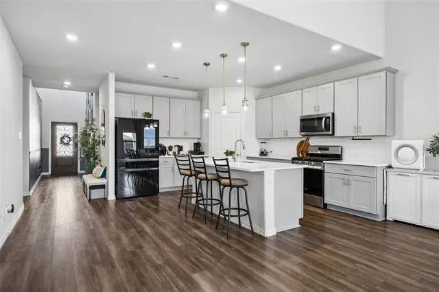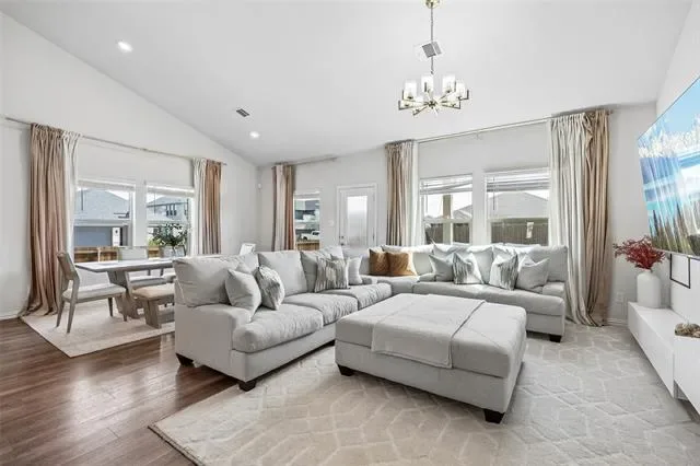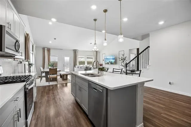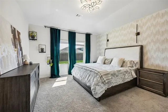 Five bedrooms, 3 bathrooms and approximately 3,050 square feet in Fort Worth Texas define this 2 story home in the Cibolo Hills community of Tarrant County zoned to Eagle Mountain Saginaw ISD. Positioned near Interstate 35W and Loop 820 with access to US 287, Cibolo Hills in Fort Worth offers commuter connectivity toward the Alliance Corridor and Downtown Fort Worth while remaining minutes from Alliance Town Center, Tanger Outlets and Presidio Towne Crossing. Designed for open concept efficiency, the floor plan includes a primary suite on the main level with dual vanities, walk in shower and generous closet space. Secondary bedrooms and an upstairs living area create separation between private retreats and shared gathering areas. If you are searching for 5 bedroom homes in Fort Worth Texas within Eagle Mountain Saginaw ISD near Eagle Mountain Lake, this layout supports functionality and long term value. The main living area provides natural light and flows into a kitchen with granite countertops, oversized island, Whirlpool appliances including electric cooktop and oven, microwave and pantry storage. Buyers comparing newer construction homes in north Fort Worth may appreciate the 2023 build, high efficiency HVAC system, energy efficient water heater, double pane windows and added insulation. Outdoor living extends to a covered patio overlooking a fenced backyard on a corner lot with paver walkways and landscaped beds. Community amenities in Cibolo Hills include a clubhouse, pool, lake, trails and playground areas. Nearby conveniences include Kroger and Sprouts along Bonds Ranch Road, medical services at Texas Health Harris Methodist Hospital Alliance and recreation at Marine Creek Lake and Eagle Mountain Lake. This property presents a balanced combination of layout versatility, Eagle Mountain Saginaw ISD zoning and strategic positioning within the Fort Worth Texas market.