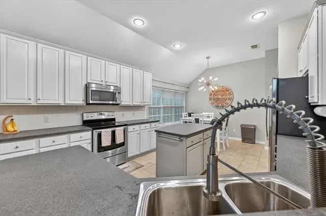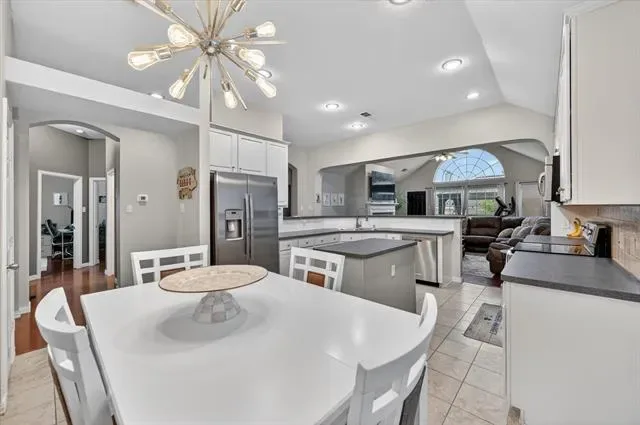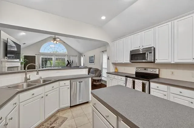 Wood floors, vaulted ceilings, natural light, and a fireplace that actually burns wood. This one just feels right. The layout is so good, formal spaces when you need them, an eat-in kitchen with an island and breakfast bar that pulls everyone together, and a family room that opens everything up. High ceilings throughout. The kitchen has plenty of storage. The bedrooms are separated. The master bedroom has abundant natural light, space, and a walk-in closet. The two-car garage actually fits your cars. Everything is working the way it should. And the big stuff, in great shape. The seller has pride of ownership and it shows. Come see it. We at RethinkHome would love to help you get there.