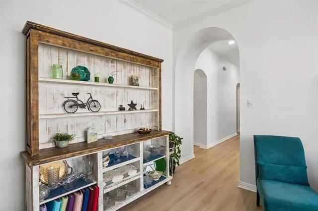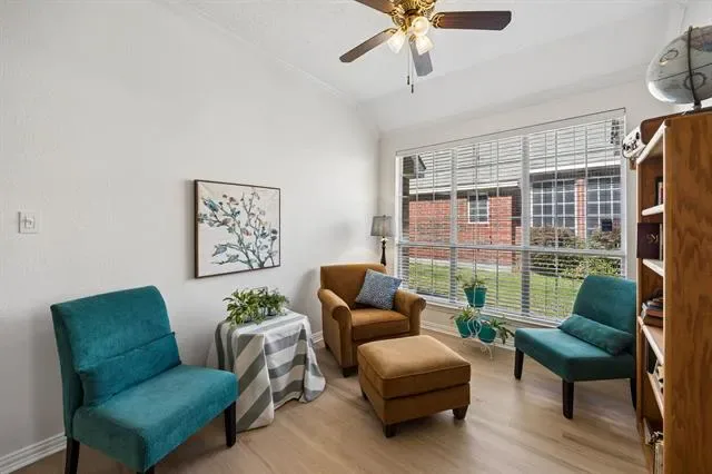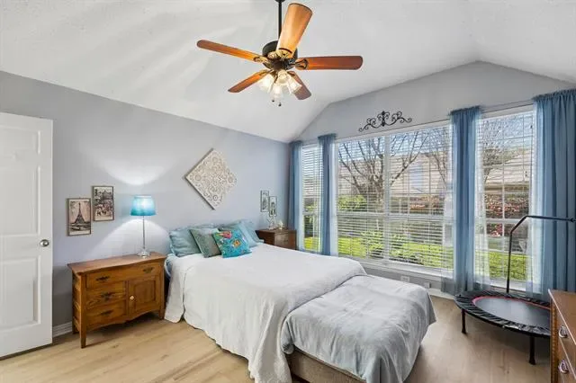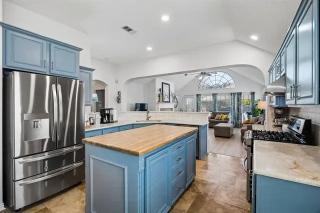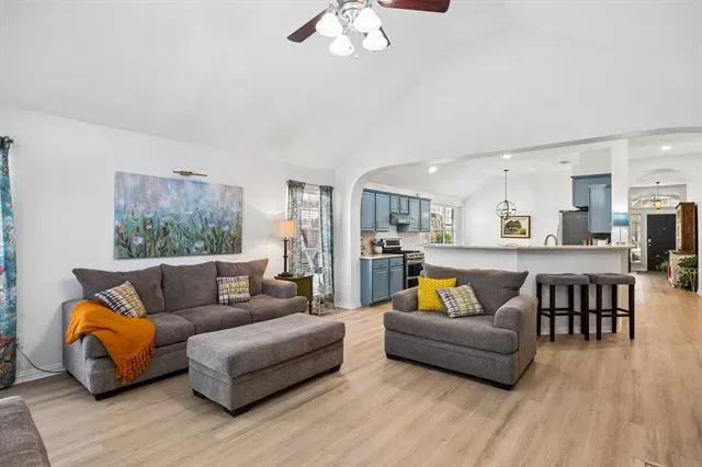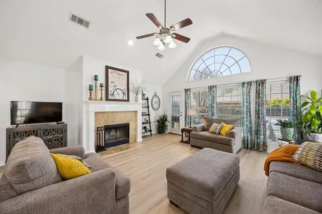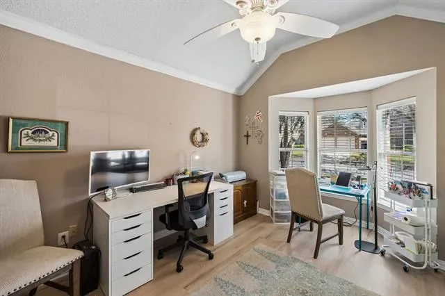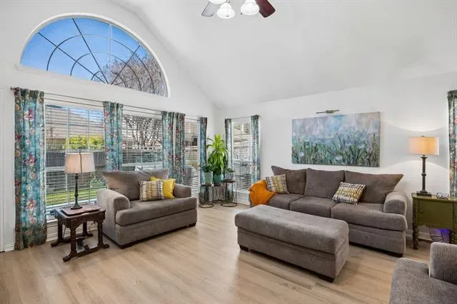 Welcome to this beautifully updated 3-bedroom, 2-bath home in the desirable Hulen Heights community, where comfort, style, and functionality come together perfectly. Step inside and you’ll immediately notice the soaring vaulted ceilings reaching up to 13 feet and an abundance of natural light that fills the home, creating an open, airy atmosphere throughout. The thoughtfully designed layout also includes a dedicated study, ideal for working from home, a playroom, or a quiet reading space. The home has been tastefully updated, featuring luxury vinyl plank flooring throughout for both durability and modern style. The completely refreshed kitchen is a true centerpiece, showcasing sleek countertops, new backsplash, a butcher block kitchen island, and LG dishwasher and gas range, perfect for everyday cooking and entertaining alike. The primary bath features a beautiful frameless glass shower that adds a touch of luxury to the primary suite. Fresh interior paint and LED can lights gives the entire home a bright, clean feel, making it truly move-in ready. Practical upgrades add peace of mind as well, including an HVAC system replaced in 2018.