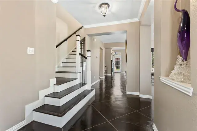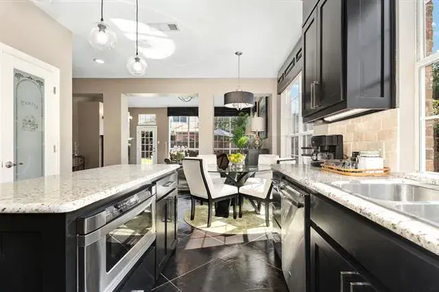 Step outside to your private backyard retreat with vibrant flower beds, flagstone patio, lush lawn, and a gas hookup ready for your outdoor grill. The tall privacy fence makes it a peaceful haven under the Texas sky—ideal for quiet mornings or weekend entertaining.