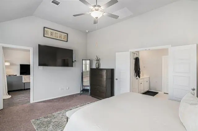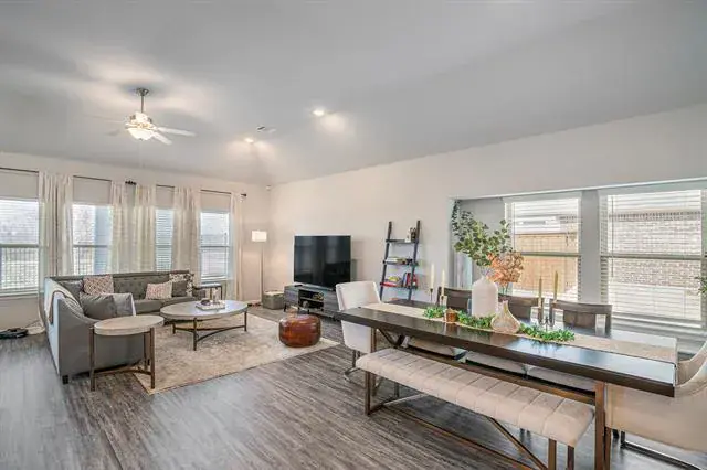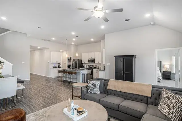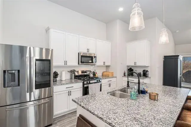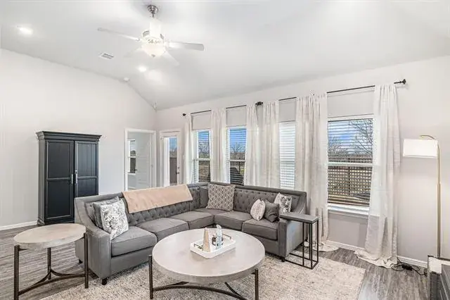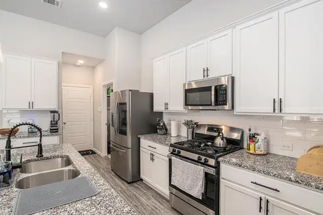 SOLAR PANELS, TANKLESS WATER HEATER, RING CAMERAS! This pristine, 2022-built home is located in the highly desirable Copper Creek subdivision of northern Tarrant County. Conveniently situated near Alliance Town Center, Hwy 287, and IH-35, this residence offers the perfect blend of modern design and everyday functionality. Step inside to discover an open floor plan ideal for entertaining. The home showcases a professionally installed accent wall that adds a touch of elegance. The spacious kitchen boasts granite countertops, stainless steel appliances, a large island, and ample cabinet space—truly a dream for any home chef! With four bedrooms and three full bathrooms, there’s plenty of room for everyone. The primary suite is a true retreat, complete with a huge walk-in closet and a spa-like ensuite featuring a separate shower. Upstairs, you’ll find a well-sized family room, perfect for gaming, media space, or additional living area. Designed for efficiency and security, this home features leased solar panels for energy savings, a tankless water heater, and Ring security cameras with front and rear exterior coverage. The sale also includes extra flooring material for future use.
