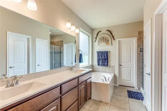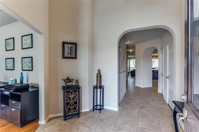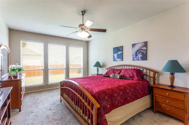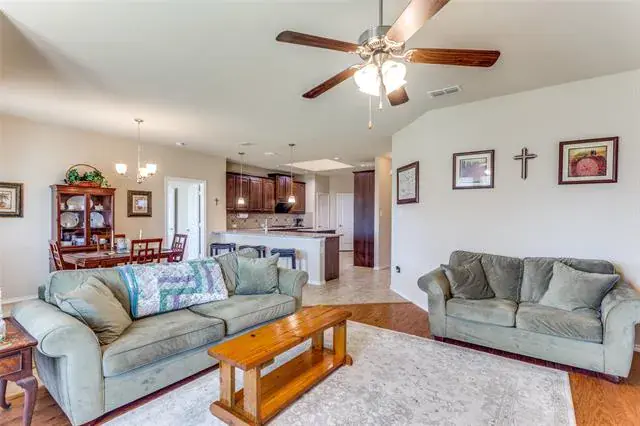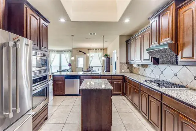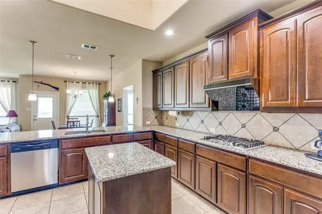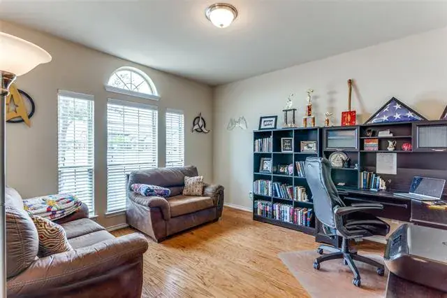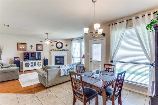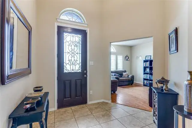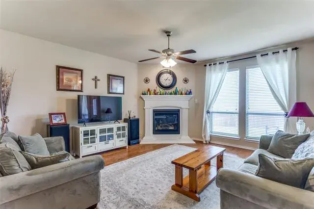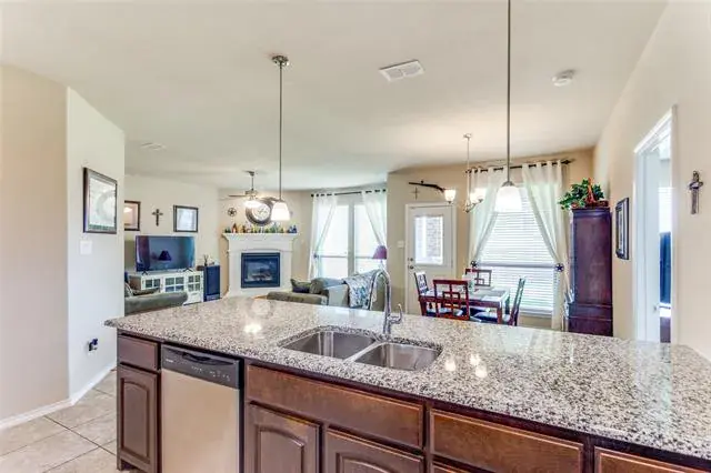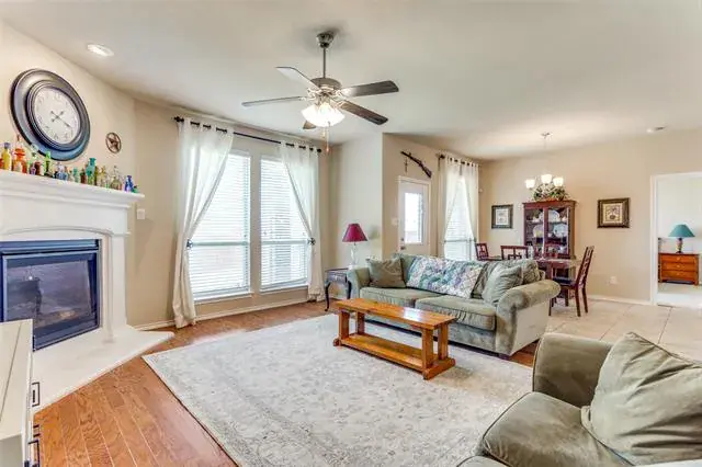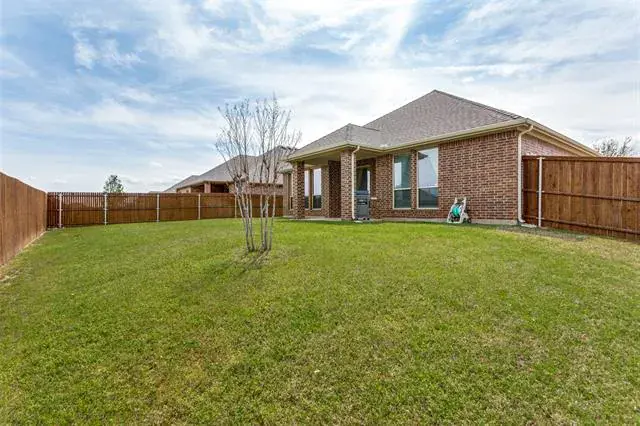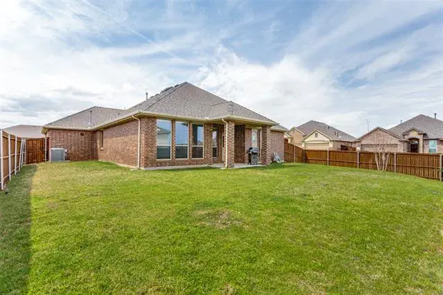 Welcome Home! Beautiful Hill Series executive style home, 3 bedroom, 2 bath, office or study PLUS 3 car garage! Oversized lot of approximately 70′ x 120′. Many extras in this Hill Series DR Horton home. Nice drive up with upgraded entry. Eight foot custom leaded front door opens to 12′ ceiling in the entry. Corner lot is the perfect location. Stone and brick landscaping trim is a great accent. Very energy efficient and super low utility bills. Fully bricked and full gutters. Amazing kitchen with island and skylight. Lots of granite countertop space and plenty of cabinets. Home features split bedrooms and front room is designed for either study-office-formal dining. Wood floors in office and living room. Living area features fireplace with gas logs. Open plan is great for entertaining. The master bedroom is huge and opens to very nice bath. Separate shower, garden tub and large vanity area. Nice secondary bedrooms. Fridge, washer and dryer can stay. Copper Creek features parks, pool, basketball and tennis court and a small lake. Greenbelt area and walking path around most of the neighborhood. Located just a short drive to the Betsy Park Community Center that is opening soon with lots of things to do including after-school care, pickleball, basketball , craft classes and more! Super easy freeway access to Fort Worth or Dallas.