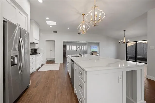 Cable TV Available, Cathedral Ceiling(s), Chandelier, Decorative Lighting, Eat-in Kitchen, High Speed Internet Available, In- Law Suite Floorplan, Kitchen Island, Natural Woodwork, Open Floorplan, Pantry, Smart Home System, Sound System Wiring, Vaulted Ceiling(s), Walk- In Closet(s), Second Primary Bedroom