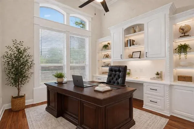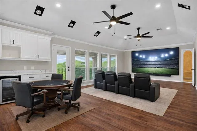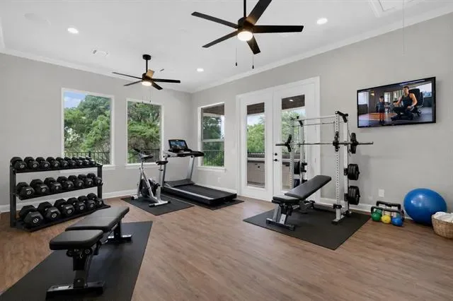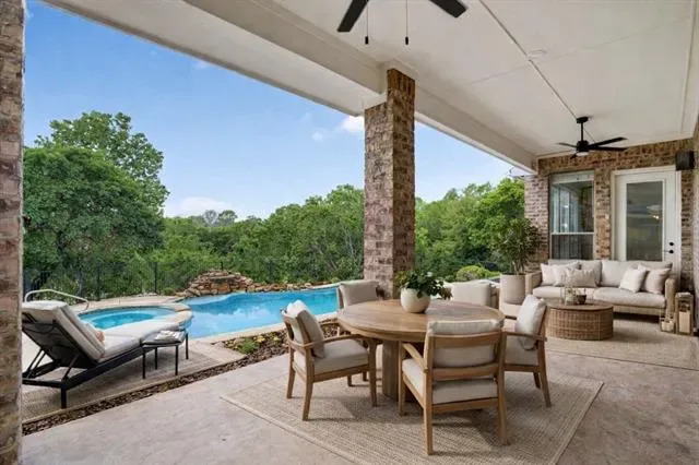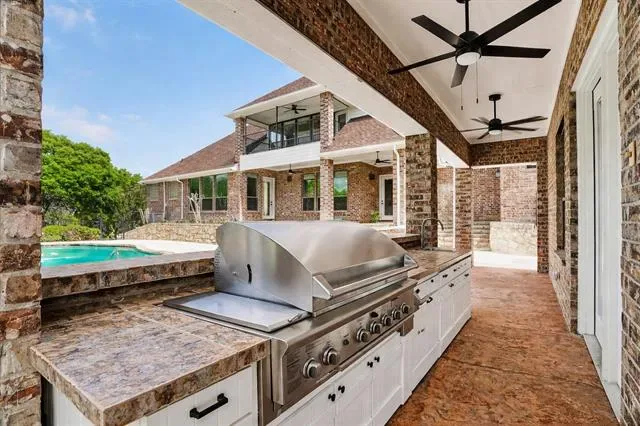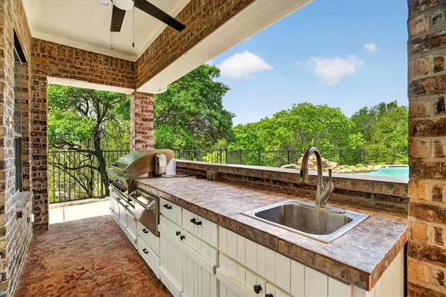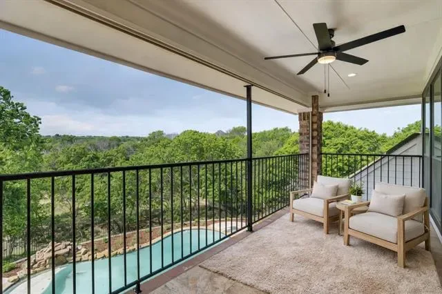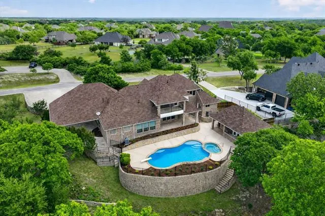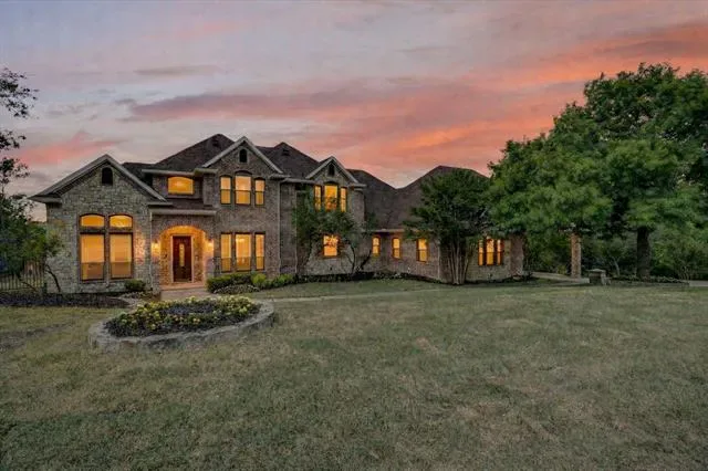 Situated on over 2 private acres in the prestigious Covered Bridge Canyon II Sub Division, this impressive two-story residence, offering approximately 4,295 sq ft, combines luxury, privacy, and natural surroundings with breathtaking canyon views. From the moment you arrive, the property offers a sense of peace and exclusivity. Located in a quiet and highly desirable community, it provides privacy while maintaining convenient access to the city. Inside, soaring ceilings and an open-concept layout create a seamless flow between the gourmet kitchen and expansive living areas. The home includes a spacious office and a media and entertainment room, ideal for everyday living and gatherings. The master suite offers a true spa-inspired retreat, with custom closet that offer both functionality and practicality. Outside, a resort-style pool, private sauna, summer kitchen, detached gym or entertainment suite, and natural landscaping create a unique outdoor setting. The balcony offers scenic views of the canyon greenery with beautiful sunsets, providing a peaceful setting throughout the day. A key highlight of the property is its outdoor experience. A stream runs through the property, and a private walking trail winds through the natural surroundings, complete with two charming bridges. Additional features include a three-car garage and an expansive covered area in front of the garages for added convenience. Located within the highly acclaimed Aledo Independent School District, this property offers a rare combination of privacy, natural beauty, and accessibility.