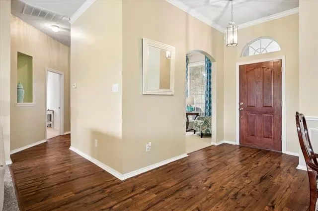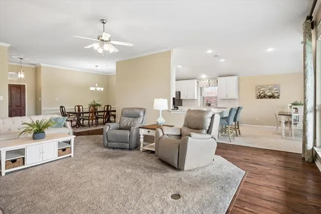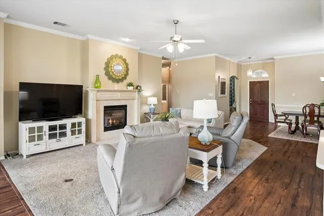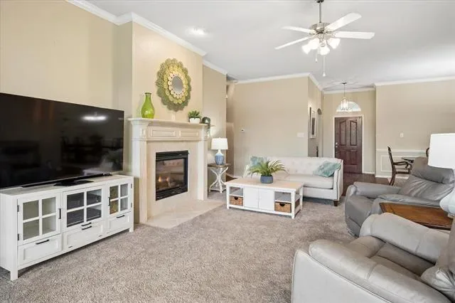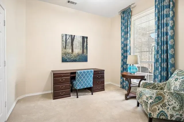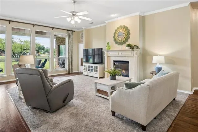 Tucked away in the lovely Crawford Farms subdivision, this charming one-owner home offers comfort, space, and serene natural views in every direction. Featuring 3 bedrooms, 2 full baths, plus a dedicated office, it’s an ideal layout for both everyday living and working from home. Step inside to find a bright, open floor plan filled with natural light from abundant windows. The spacious living and dining areas showcase the greenbelt view with laminate hardwood floors and gas fireplace, creating a warm and inviting atmosphere. The large, bright, updated kitchen is a standout, complete with travertine tile, ample counter space, and plenty of room to entertain. Out back, enjoy a covered patio that overlooks a peaceful greenbelt with scenic walking trails-perfect for relaxing evenings or morning coffee. Even the front of the home has a greenbelt view, adding to the sense of privacy and outdoor connection. Whether you’re a first-time home buyer, or looking for a great investment property with thoughtful updates and a prime setting, this property checks all the boxes. Roof was replaced in 2021.