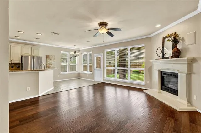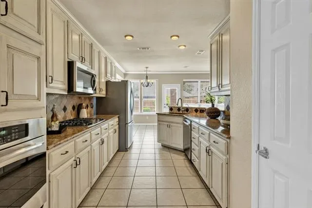 Crawford Farms living at its best. This well-maintained home checks every box — thoughtful layout, meaningful updates, and a backyard built for making memories. The open-concept main floor flows easily from a large living area and formal dining room to a breakfast nook and kitchen equipped with granite countertops, stainless appliances, a gas cooktop, and a separate pantry. The spacious primary suite is conveniently located downstairs, while three secondary bedrooms and an oversized loft give everyone room to spread out upstairs. Step outside to a covered porch that spans the full width of the home, overlooking a backyard with plenty of space to play, entertain, or simply unwind. Recent updates include: roof (2021), water heater (2023), upstairs AC condenser (2024), fence (2024), microwave (2025), and dishwasher (2025). Crawford Farms amenities include — pool, kiddie pool, splash pad, playground, trails, green space, basketball and tennis courts. HOA regularly hosts fun community events, often centered around annual holidays. Add in easy access to the H-E-B, shopping and dining in the Alliance corridor plus quick I-35 connectivity, and the location is just as strong as the home itself.