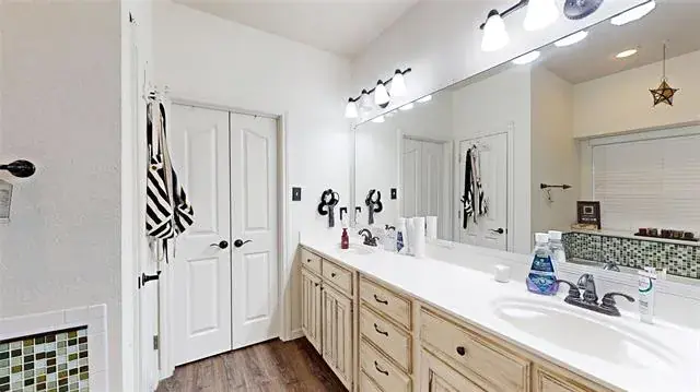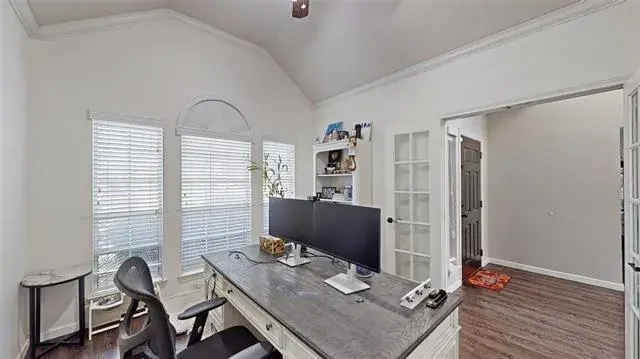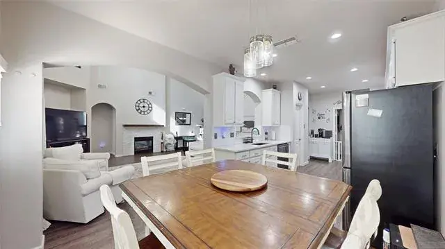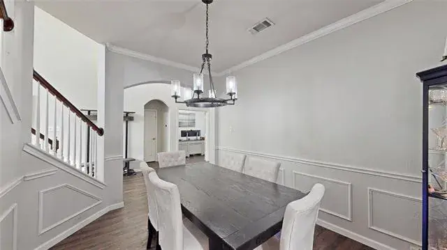 Stunning 2-story in highly sought-after Crawford Farms! Terrific drive-up appeal is highlighted by a beautiful brick elevation and mature trees! Inside you will find 5 bedrooms, 3 full baths, formal dining area, large upstairs loft, and 2-car garage! 5th bedroom makes an ideal private home office! Upgrades and amenities include gorgeous luxury vinyl flooring throughout main living areas, neutral paint tones throughout, spacious family room with 2-story ceilings and a cozy gas log fireplace, upgraded lighting fixtures, extensive crown molding, split bedrooms for added privacy, and MORE! Gourmet kitchen boasts an abundance of bright white cabinetry, quartz countertops with a subway tile backsplash, stainless appliances including a gas range with double ovens, wine fridge, and breakfast nook. Primary retreat with sitting area secluded at the rear of the home offers a luxurious ensuite bath with a dual sink vanity, garden tub with separate shower, and generously-sized walk-in closet. Three bedrooms, a spacious loft, and full bath round out the second level of the home! Spend upcoming summer evenings beneath the expansive covered patio area in the private backyard!