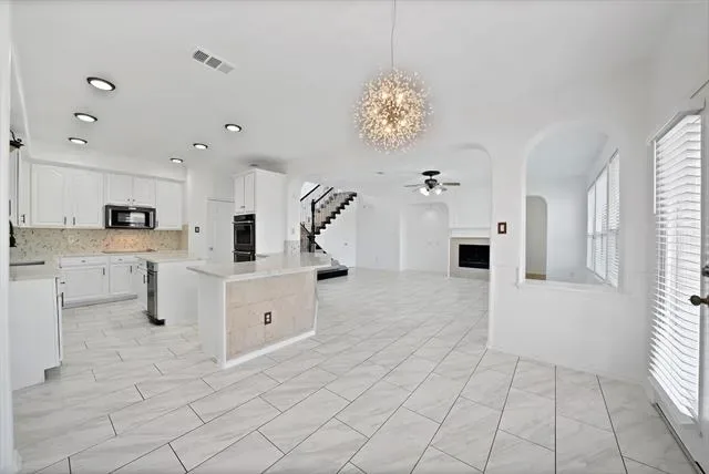 The open-concept floor plan showcases soaring ceilings, abundant natural light, and spacious living areas designed for both everyday living and entertaining. The fully remodeled kitchen stands out with modern finishes, updated cabinetry, and ample counter space—perfect for buyers searching for a move-in ready home with an upgraded kitchen.