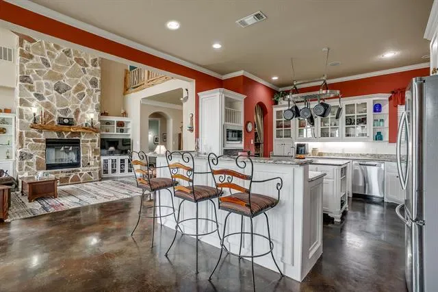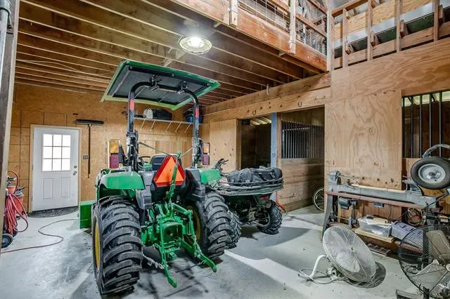 Sprawling 8 acre fenced property in Creeks of Aledo, offering 3 bedrooms, an office with closets that could be 4th bedroom, PLUS an interior one bed, one bath, separate apartment! Apartment features small kitchen, laundry, and living room. Upon entering the spacious home, you see the incredible light that flows through the impressive 2 story windows in the living room. Open to the kitchen and dining, the living room has built-ins and woodburning fireplace. From there you see the beautiful rolling acreage. Primary suite, office, and a full bathroom downstairs along with kitchen, large utility room. 2 additional bedrooms, full bath, 2nd living room upstairs. Off one upstairs bedroom, it is pre plumbed for future ensuite bath. Outside, a well-appointed barn features 2 additional car spots, 2 horse stalls, additional space with loft. Class 4 roof. Storm shelter, raised gardens, your country living dream can be realized!