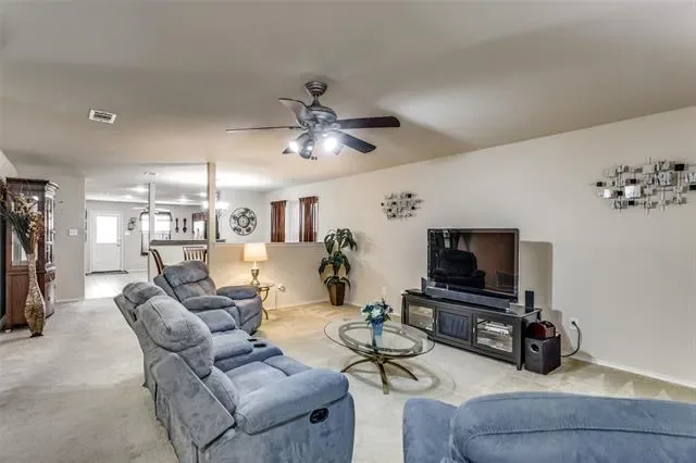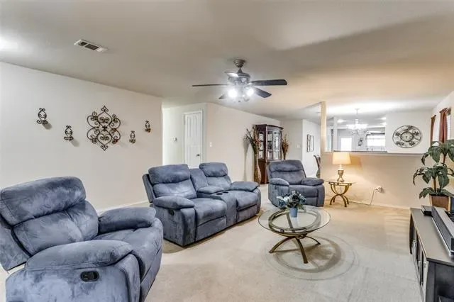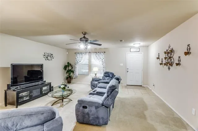 Move-in ready single-story home in southwest Fort Worth’s 76123 zip code, zoned to Crowley ISD. This 3 bedroom, 2 full bathroom home features an open-concept layout with defined living, dining, and kitchen spaces which makes it ideal for entertaining. The kitchen includes granite countertops, a granite island with storage, natural wood cabinetry, and stainless steel appliances, plus an oversized walk-in pantry with room for a deep freezer.