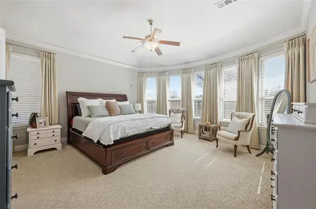 Fantastic location and beautiful curb appeal welcome you to this stunning home featuring an open floor plan and designer finishes throughout. The chef’s kitchen is the heart of the home, complete with stainless steel appliances, granite countertops, abundant cabinetry, and not one but two generous islands—perfect for meal prep and entertaining.The spacious living area centers around a cozy fireplace, creating a warm focal point for gatherings. A formal dining room offers an elegant space for hosting, while the large dedicated office provides privacy and functionality for work or study. The primary bedroom is expansive and tranquil, with a luxurious en suite bath and an oversized walk-in closet. All secondary bedrooms are thoughtfully split from the primary for added privacy and are generously sized, filled with natural light. Enjoy indoor-outdoor living on the screened-in patio, which functions as an additional living area ideal for relaxing or entertaining. The backyard is spacious and serene, overlooking a peaceful green space and pond, offering a sense of privacy and a beautiful natural backdrop. This remarkable home is located near the highly rated schools and is close to fabulous shopping and restaurants.
