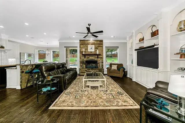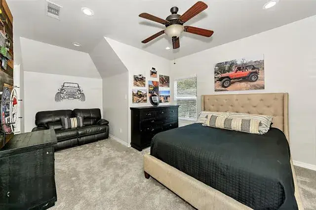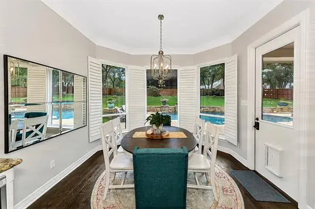 This gorgeous 4 bedroom 3.5 bath home is located in the secluded and highly desirable gated neighborhood of Crestpoint. This home has charm and is nestled on approximately a half-acre. From the welcoming entrance to the 5-star backyard with a large sparkling salt pool with spa and fountain features and large patio area, this home has it all- class, elegance and charm! The primary bedroom is located on the first floor. The primary bath has a large walk-in shower and large walk-in closet. The drawers under the sinks have custom pull out drawers and there is even a chandelier over the soaking tub. There is a view of Eagle Mountain Lake across the street from the Primary bedroom and the front of the house. The floorplan is very welcoming with the kitchen open to the living room and all secondary bedrooms are upstairs. The 4th bedroom has lots of closet storage and is currently used as a media room. New Solar Smart II Argon insulated windows were installed throughout the house in November of 2024. The home has a generator that runs on propane. There are 2 propane tanks on the property. Show this home to your pickiest clients. They will be impressed! This is the perfect entertaining home and is ready for its new owners to love and enjoy!