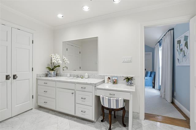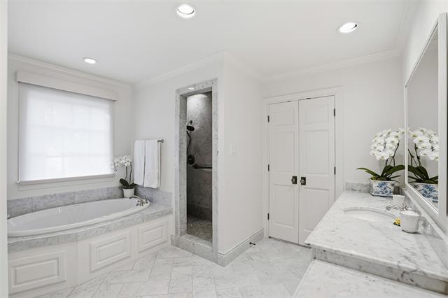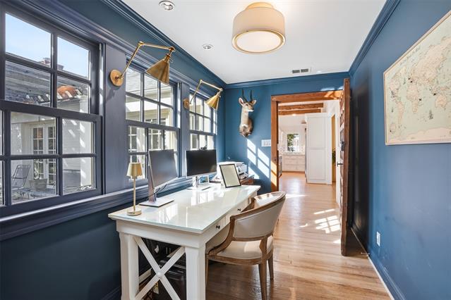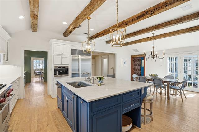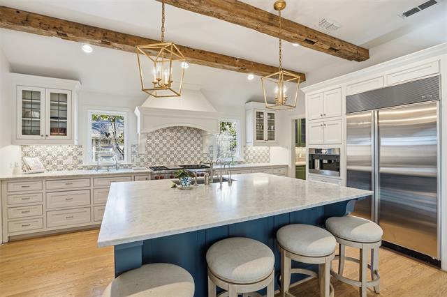 Completely reimagined Crestwood residence offering 3 bedrooms, 3.5 baths, and an extensive renovation completed between 2022–2025, with most of the home taken to the studs. Each generously sized bedroom features a private ensuite bath and custom walk-in closet, including a luxurious primary suite with dual closets. A versatile second-floor loft provides flexibility for a bunk room, playroom, or private retreat. The gourmet kitchen is designed for both everyday living and entertaining, showcasing a 48” Wolf gas range, Sub-Zero refrigerator, built-in Miele coffee system, and an expansive butler’s pantry with premium appliances including dual dishwashers, warming drawer, wine refrigerator, ice maker, and beverage drawers. Thoughtful architectural enhancements include raised and pitched ceilings throughout, reclaimed Virginia wood beams, and a striking Italian marble fireplace mantle. Additional highlights include reconfigured ensuite bedrooms, a charming utility room with a built-in dog sleeping area, and a custom children’s loft space. Designed with health and efficiency in mind, the home features whole-house Aquasana water filtration, FloLogic leak defense system, water sensors with automatic shutoff, and reverse osmosis drinking water systems in the kitchen and laundry room. Crawlspace improvements include full encapsulation and a dedicated dehumidifier. Interior materials were carefully selected for health and wellness. Designer finishes are evident throughout, with imported Italian elements including the powder bath marble vanity, family room fireplace, and a statement wood office entry door. Smart home features include a fully integrated, mobile-controlled security system with exterior cameras, hardwired windows and doors, whole-home audio with Sonos speakers in main living areas and patio, and advanced climate control systems.