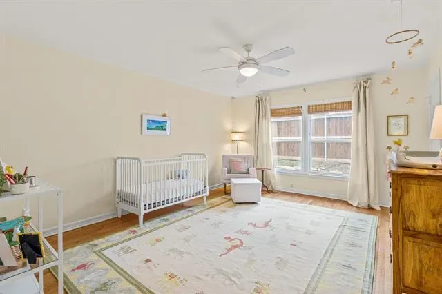 A generously sized backyard with french drain, decorative brick wall, and brick patio offers endless possibilities—whether envisioning a resort-style pool, outdoor entertaining pavilion, or private garden escape.