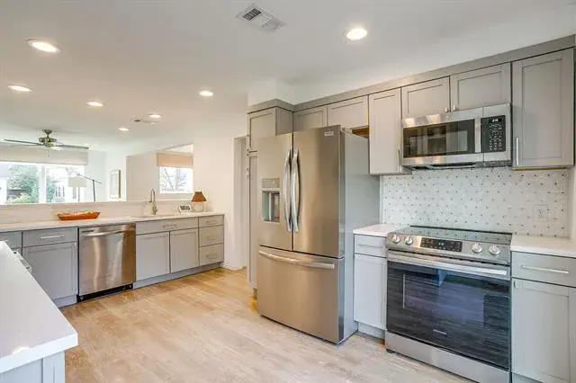 Out front, the curb appeal is undeniable, fresh exterior paint, modern board-and-batten, a welcoming front porch, manicured landscaping, and a private fenced yard. The home is serviced by an oversized AC unit and updated systems for peace of mind and year-round comfort.