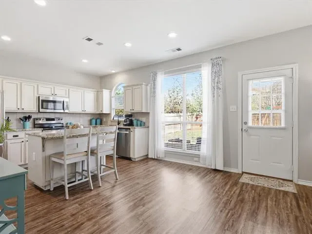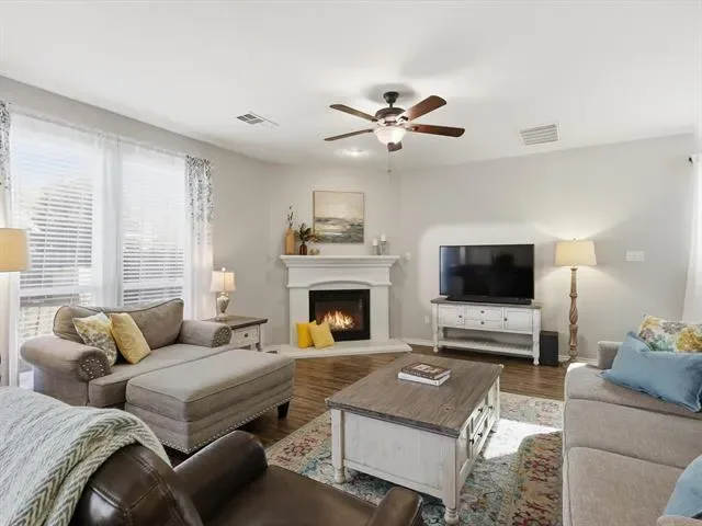 Modern Comfort Meets Unbeatable Convenience in North Fort Worth. Discover the perfect blend of contemporary style and functional design in this stunning 3-bedroom, 2.5-bathroom and bonus media-playroom! This residence is ideal for first-time buyers or those relocating to the area who desire a move-in-ready property. From the moment you arrive, you’ll appreciate the charming brick elevation, inviting curb appeal, and well-kept landscaping. Step inside to a bright and airy entry with soaring ceilings and an open, flowing layout designed for both everyday living and entertaining. The spacious living room features abundant natural light, a cozy fireplace, and seamless connection to the kitchen. The kitchen is well-appointed with granite countertops, stainless steel appliances, a center island with seating, and ample cabinetry, plus a large pantry that provides exceptional storage. A window over the sink offers a pleasant view of the backyard, bringing in natural light and making everyday tasks feel a little more enjoyable. The home offers generously sized bedrooms, including a comfortable primary suite with an en-suite bath featuring dual sinks, a soaking tub, and separate shower. A versatile upstairs living area with vaulted ceilings adds flexible space perfect for a game room, media room, or additional lounge. Step outside to enjoy a spacious backyard with plenty of room to play, entertain, or relax—this outdoor space offers endless possibilities! Significant system updates provide peace of mind, including a new upstairs AC, two new furnaces, and a new water heater—making this home not only beautiful but also move-in ready with major mechanical improvements already completed. Conveniently located near schools, H-E-B grocery, diverse dining options, local shopping centers, and access to major highways for easy commuting, this home checks all the boxes for comfort, space, and value in Fort Worth. Schedule your showing today!
