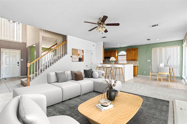 *Back on the market, no fault of the seller*Spacious 4-bedroom, 2.5 bath home with a thoughtful layout and plenty of room to spread out. The primary suite is conveniently located on the first floor, while upstairs features a second living area that works perfectly as a game room, media space, or home office. Downstairs offers two generous living areas, a dining space, and a cozy breakfast nook. The kitchen provides ample counter space and abundant cabinetry for everyday living and entertaining. Enjoy relaxing evenings by the gas fireplace, easily started with the flip of a switch. With charming curb appeal and an open, welcoming feel, this home is just a short walk to the community pool and minutes from shopping, dining, and access to major freeways. The property does need cosmetic updates and is being sold as-is, offering a great opportunity to make it your own. Ask about available grant programs, qualified buyers may be able to purchase with minimal out-of-pocket costs.