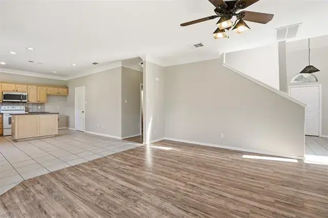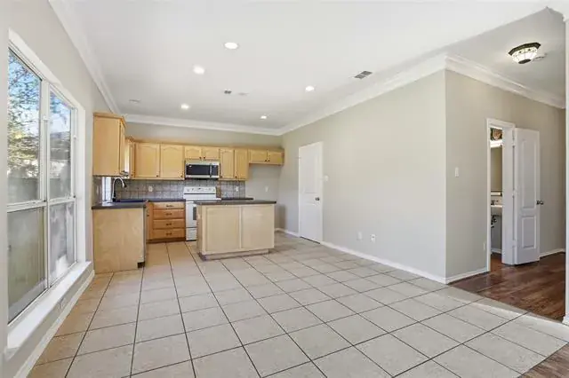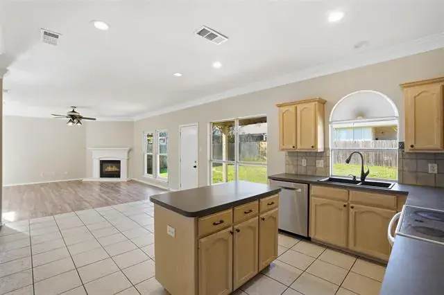 Discover this beautifully maintained 4 bedroom, 2.5 bath home in the desirable Crossing at Fossil Creek community of north Fort Worth. Designed for comfort and convenience, it offers a welcoming traditional style and an open layout ideal for everyday living and entertaining. Step inside to find a bright and inviting interior featuring crown molding, decorative lighting, and a blend of carpet, ceramic tile, and laminate flooring. The spacious living area, enhanced by laminate wood flooring, centers around a cozy gas log fireplace and flows seamlessly into the dining spaces. The chef’s kitchen offers clear views to the living room and includes ample counter space, updated LED lighting, and direct access to a generous pantry and oversized utility room. All four bedrooms feature fresh paint, while the thoughtfully situated primary suite offers a quiet retreat. Its ensuite bath includes dual vanities, a separate shower, and a relaxing jetted tub. Secondary bedrooms are positioned for privacy and flexibility, making them ideal for family, guests, or work-from-home needs. Additional highlights include a radiant barrier and insulation in the attic, newer AC unit, Vivint Smart Home system with app controlled keyless entry, thermostat, door camera, security system, and compatible lamps. The HVAC and Sprinkler are controlled by apps and the home features a 2 car garage and access to community amenities including a neighborhood pool and playground. Located near major highways I30, I-35, and I820, as well as Alliance Town Center, this home combines convenience with comfort. With its thoughtful layout and well kept condition, it’s ready for its next owners to move right in and enjoy.
