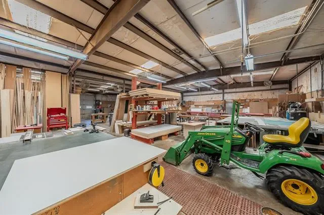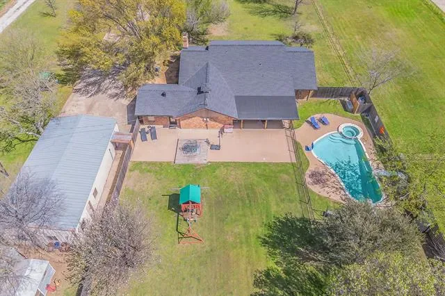 Exceptional opportunity to own a versatile 2.92 acre property in Fort Worth within Keller ISD, offering a rare combination of space, functionality, and convenience. The main home features 3 bedrooms, 3 full bathrooms, and 2,615 sq ft of well designed living space. A welcoming covered front porch (155 sq ft) and expansive covered back porch (440 sq ft) provide inviting outdoor areas for relaxing or entertaining. Inside, the large family room includes a vaulted ceiling and fireplace, creating a warm central gathering space. An oversized game room with wet bar and full bathroom offers flexible use as a potential 4th bedroom, guest suite, or entertainment area.Outdoor amenities include an inground gunite diving pool with slide, cross fenced acreage suitable for horses, and additional parking ideal for an RV or boat. The property also includes a 960 sq ft 2 car+ detached garage, providing abundant storage and workspace options.A standout feature is the impressive 4,200 sq ft metal buildingg located on the back acre. Built on a concrete slab and equipped with 210 amp electricity, a bathroom, and two offices, this structure is currently used as a commercial cabinet-millwork shop. Its size and layout offer exceptional potential for business operations, equipment storage, hobby use, or future customization.