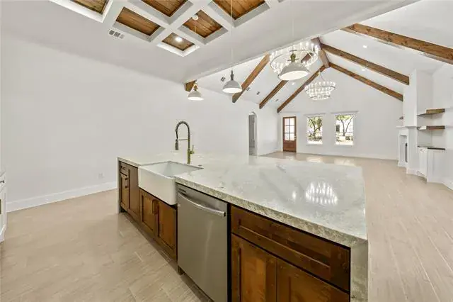 Cathedral Ceiling(s), Decorative Lighting, Kitchen Island, Natural Woodwork, Open Floorplan, Pantry