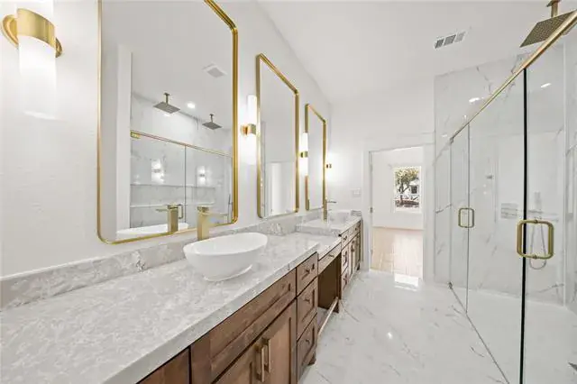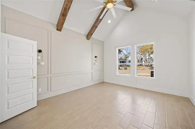Stunning 2026 new construction offering 4 bedrooms and 2 full bathrooms, thoughtfully designed with modern elegance and functional living in mind. From the moment you walk in, you’re welcomed by soaring cathedral ceilings that create a bright, open atmosphere filled with natural light. The spacious living area flows seamlessly into a beautifully designed kitchen featuring a large quartz island, custom cabinetry, and stylish finishes—perfect for entertaining or everyday living. The private primary suite serves as a true retreat, complete with a spa-inspired bathroom showcasing an oversized walk-in shower, multiple vanities including a dedicated makeup vanity, and a generous walk-in closet for optimal organization. The additional bedrooms are well-sized and versatile, ideal for family, guests, or a home office. Enjoy the added convenience of a rear-entry driveway and back garage, enhancing both privacy and curb appeal. With designer details throughout and quality craftsmanship in every space, this brand-new home offers the perfect blend of comfort, sophistication, and modern style.