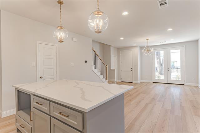 Lovely lock and leave townhome in sought after River District. If you desire a home where you can walk to the Trinity River Hike and Bike Trails, entertainment and restaurants, and be only a few minutes from downtown, this is the neighborhood for you!. Beautiful styling and finishes, low maintenance lifestyle, front yard fenced for play or pleasure. Light filled, open concept main level with outdoor living space in enclosed front yard. Enjoy relaxing while watching the kids or dogs play on your front porch. Inside find easy maintenance but gorgeous luxury flooring and a kitchen a chef would love! Gas cooking and custom cabinetry and a huge kitchen island for entertaining make this an extraordinary place for fun and comfort. Guests can move freely around the open to the living room kitchen and dining space, and there is a second loft space on the second level for study or exercise. The owner’s suite is separated from the other two bedrooms by this loft space, so it is private and serene. A huge tub to soak away the day’s stress and a separate shower with dual vanity round out the spacious owner’s ensuite bathroom. Large walk in closets in every bedroom provide great storage space. If living close to all the coolest things to do in the Fort is something you find appealing, schedule a time to view this property. Move in before the holidays and we can help this happen with buy down dollars when using our preferred lender.