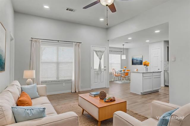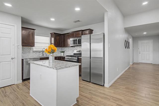 Welcome to this charming 3 bedroom, 2 bathroom home featuring approximately 1,342 square feet of comfortable living space. The spacious interior boasts stylish wood-like tile floors throughout, complemented by stunning granite countertops and modern stainless steel appliances in the well-appointed kitchen. The kitchen also showcases an updated backsplash and island, perfect for entertaining. The freshly sodded front yard enhances the home’s curb appeal. The generous master bath includes a relaxing garden tub and a separate shower, providing a perfect retreat. This home also offers a two-car garage for convenience and storage. Don’t miss the opportunity to make this beautiful property your new home!