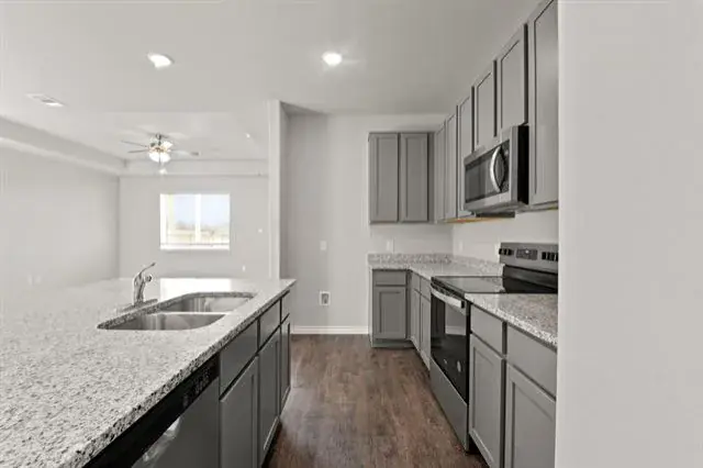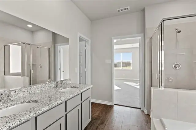 Love where you live in Deer Creek in Fort Worth, TX! The Salerno floor plan is a spacious 2-story home with 4 bedrooms (2 down, 2 up), 3 baths, game room, and 2-car garage. This home has it all, including privacy blinds and vinyl plank flooring throughout the first-floor common areas! The first floor offers the perfect space for entertaining with an island kitchen open to expansive living and dining areas! The gourmet kitchen is sure to please with 42-inch cabinetry, granite countertops, and stainless-steel appliances! Retreat to the first-floor Owner''s Suite featuring a beautiful bay window, double sinks with granite countertops, a separate tub and shower, and a walk-in closet! Enjoy the great outdoors with a covered patio! Don’t miss your opportunity to call Deer Creek home, schedule a visit today!