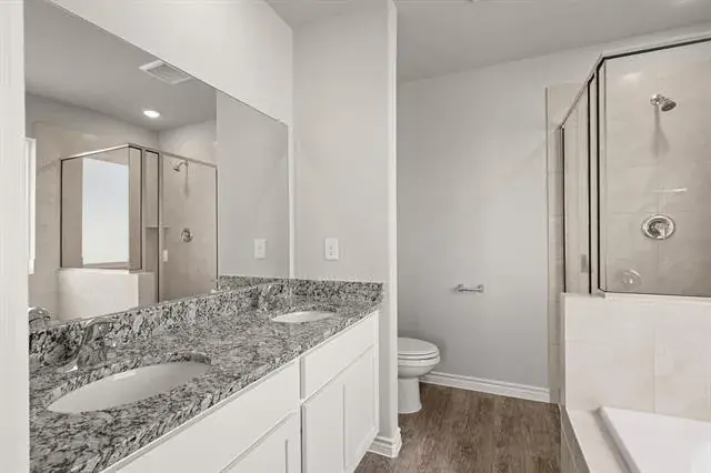 Love where you live in Deer Creek in Fort Worth, TX! The Aspen floor plan is a charming 1-story home with 3 bedrooms, 2 bathrooms, and a 2-car garage! This home has it all, including vinyl plank flooring throughout the entire home and tray ceilings for some dramatic flair! The gourmet kitchen is sure to please with 42” white cabinetry, granite countertops, and stainless-steel appliances! Retreat to the Owner’s Suite featuring double sinks with granite countertops, a separate tub and shower, and a spacious walk-in closet! Enjoy the great outdoors with a sprinkler system and a covered patio! Don’t miss your opportunity to call Deer Creek home, schedule a visit today!