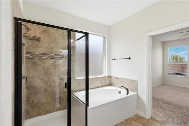 The private primary suite is a true retreat, complete with a relaxing garden tub, separate shower, dual sink vanity, and an oversized walk-in closet. Two additional bedrooms offer flexibility for guests, a home office, or growing households.