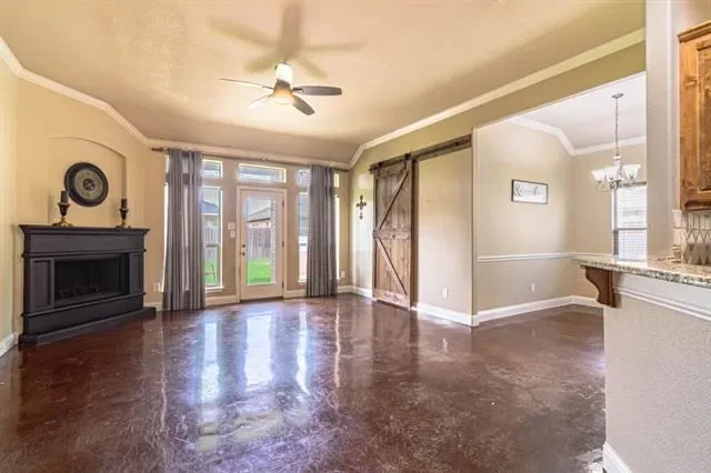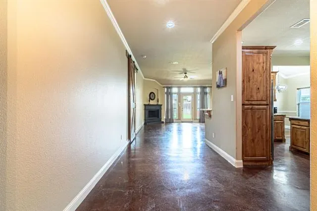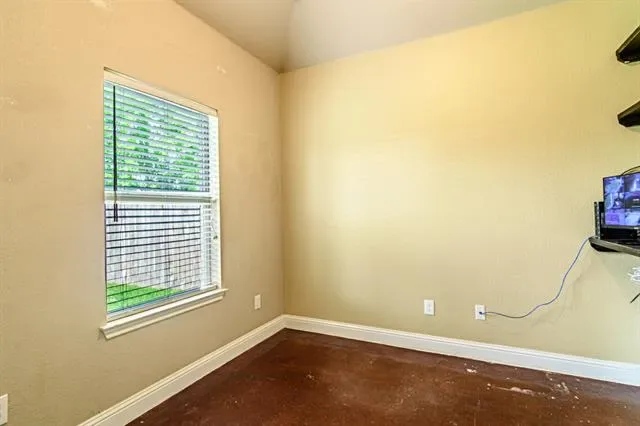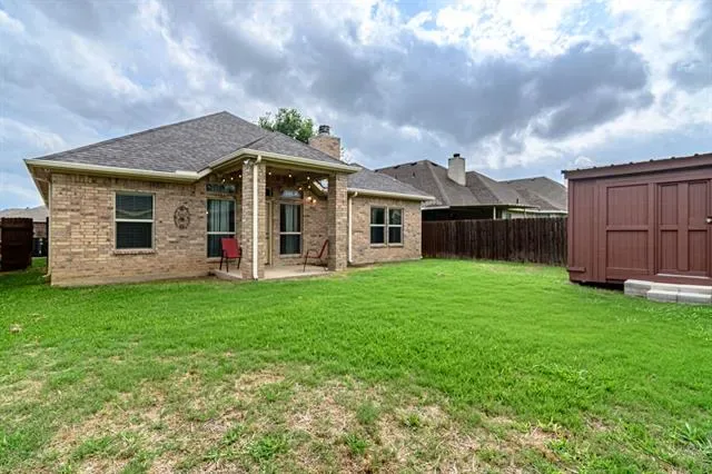 MEDIA ROOM-GARAGE CONVERSION! Welcome to Burleson TX. An ever-growing suburb of Ft. Worth perfect for family communities. This 3 bed-2 bath home is a perfect starter home with an open living layout and robust stained concrete floors that can withstand the wear and tear from kids or pets. The primary suite is large with an ensuite bath that features a garden tub, tile shower, dual sink vanity and walk-in closet. The kitchen features all custom wood cabinets with a built-in vent hood, granite countertops and island, ss appliances, tons of storage and a connected dining area. The media room-garage conversion is under ac meaning it easily adds 400 sq. ft. of extra living space to the home that is not on the tax rolls. This room could be also used as a great flex space and has the benefit of being converted back to a 2-car garage, if desired. The living room features a fireplace and an offset office for a seamless mix of work and relaxation for at-home workers. 2 accessory bedrooms and a hall bath are located at the front of the house. The backyard features a large storage-workshop building. A full 9 camera hardwired security system is included. All electric appliances. Stained concrete and carpet throughout. A public park is located in the neighborhood. Conveniently located near I-35 for easy commuting, yet far enough away to maintain a quiet atmosphere, this home offers the best of both worlds. Just minutes from local shopping, dining, and everyday conveniences—including H-E-B. Don''t Miss This One!